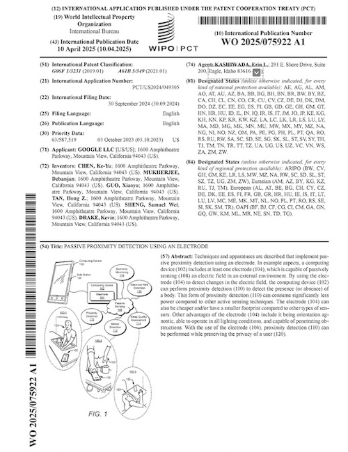 Passive proximity detection using an electrode Awarded August 10, 2025 (WO2025075922A1) |